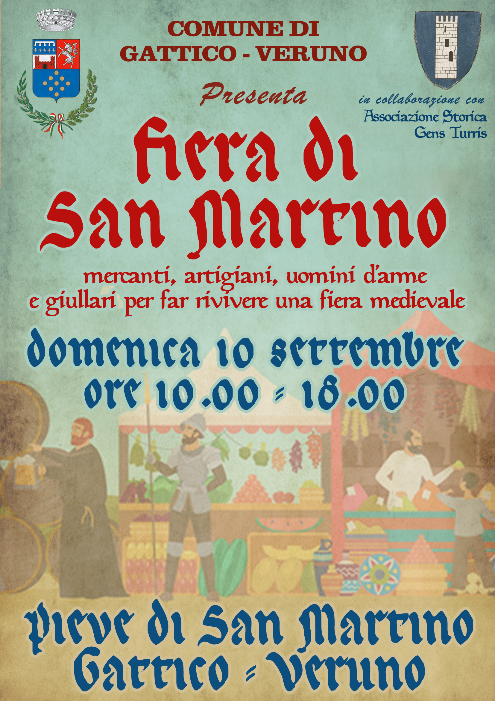 In collaborazione con l'Associazione Storica "Gens Turris" di Bolzano Novarese, anche quest'anno viene proposta la Fiera di San Martino, domenica 10 settembre 2023 presso la suggestiva Pieve di San Martino in località Gattico, dalle ore 10,00 alle ore 18,00