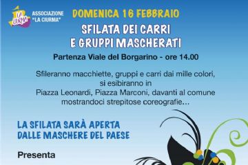 Sfilata dei carri e gruppi mascherati. Partenza ore 14:00 da Viale del Borgarino in località Gattico