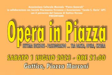 Sabato 1° luglio 2023 alle ore 21,00 si svolgerà la VII edizione di "OPERA IN PIAZZA" come ogni anno in Piazza Marconi (località Gattico).